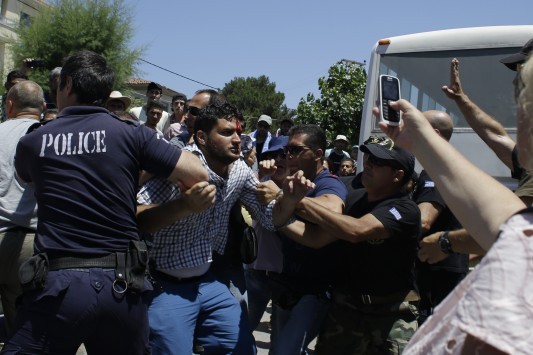 Εκατοντάδες άτομα αρχικά έκλεισαν το δρόμο μπροστά από τον καταυλισμό, διαμαρτυρόμενοι για την πολύωρη αναμονή προκειμένου να παραλάβουν τα ταξιδιωτικά τους έγγραφα.